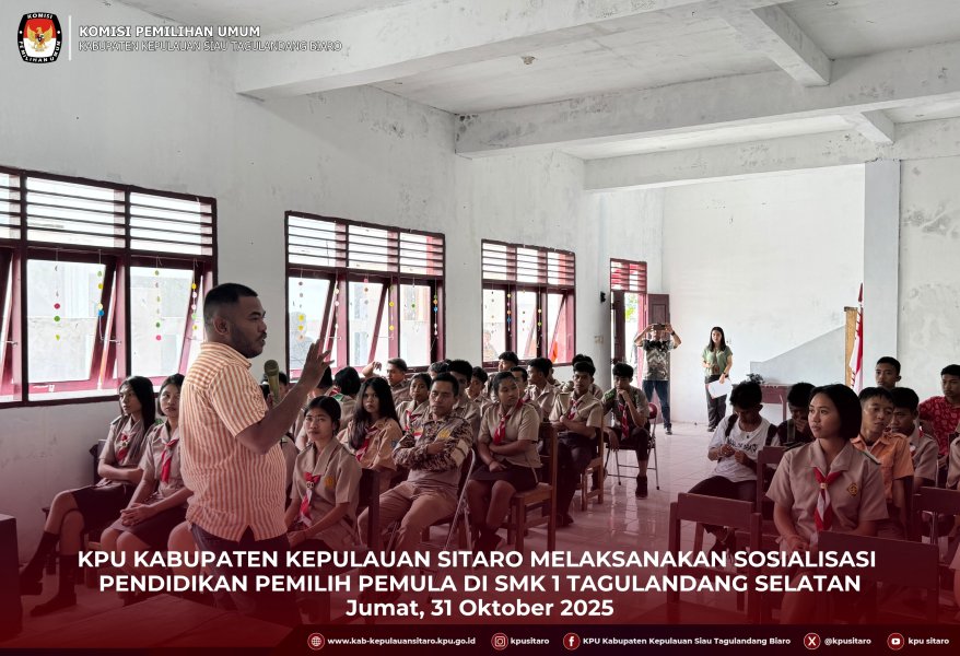 KPU Kabupaten Kepulauan Siau Tagulandang Biaro melaksanakan Kegiatan Sosialisasi Pendidikan Pemilih kepada Pemilih Pemula, bertempat di SMK Negeri 1 Tagulandang Selatan, Jumat (31/10/25).