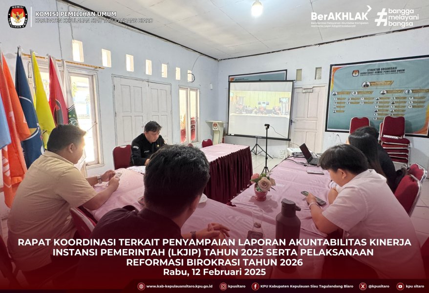 Selanjutnya, rapat dilanjutkan dengan pembahasan teknis terkait Laporan Kinerja Instansi Pemerintah (LKjIP), guna memastikan kesesuaian antara perencanaan, pelaksanaan, dan pelaporan kinerja pada masing-masing satuan kerja dan untuk KPU Kabupaten Kepulauan Siau Tagulandang Biaro telah menyelesaikan pengisian LKjIP sesuai dengan batas waktu yaitu tanggal 30 Januari 2026. Dalam kesempatan tersebut juga dibahas pentingnya inovasi dalam pelaksanaan Pemutakhiran Data Pemilih Berkelanjutan (PDPB) sebagai upaya meningkatkan kualitas data pemilih yang akurat dan mutakhir. Ketua Divisi Perencanaan, Data dan Informasi bapak Frismar B.S. Siramba menyampaikan bahwa untuk KPU Kabupaten Kepulauan Siau Tagulandang Biaro telah berkoordinasi dengan Divisi Partisipasi, Hubungan Masyarakat dan SDM bahwa akan melakukan kerjasama terkait PDPB dan Sosialisasi Pemilih Pemula yang akan diadakan di SMA/SMK yang ada di Kabupaten Kepulauan Siau Tagulandang Biaro.