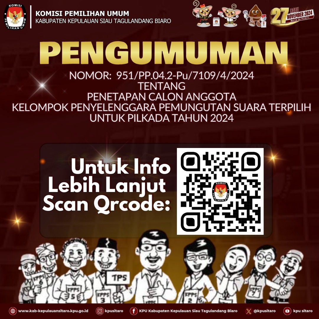 KPU Kabupaten Kepulauan Siau Tagulandang Biaro Mengumumkan Pengumuman Penetapan Calon Anggota Kelompok Penyelenggara Pemungutan Suara Terpilih untuk Pilkada Tahun 2024.