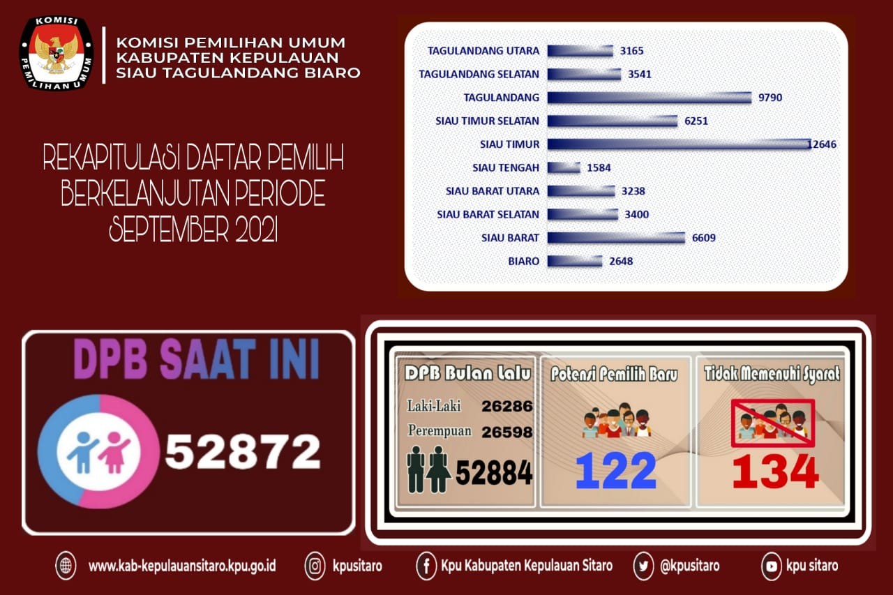 Bertempat di kantor KPU Kabupaten Kepulauan Siau Tagulandang Biaro Senin (4/10/2021) dilakukan Rapat Koordinasi Persiapan Penetapan Pemutakhiran Daftar Pemilih Berkelanjutan dengan stakeholder untuk periode bulan September 2021. Rakor ini dihadiri oleh Ketua, Anggota dan sekretaris KPU, Bawaslu serta perwakilan dari Dinas Kependudukan dan Catatan Sipil Kabupaten Kepulauan Siau Tagulandang Biaro.