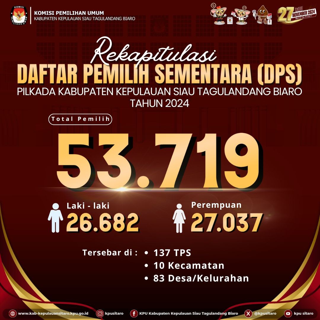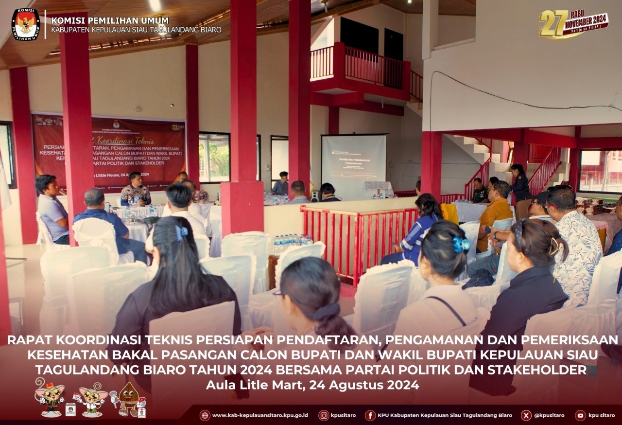 Ondong - kab-kepulauansitaro.kpu.go.id Komisi Pemilihan Umum Kabupaten Kepulauan Siau Tagulandang Biaro resmi membuka pendaftaran bakal pasangan calon bupati dan wakil bupati mulai hari ini 27 Agustus hingga 29 Agustus 2024 yang berlangsung di Kantor KPU Kabupaten Kepulauan Siau Tagulandang Biaro. Ketua KPU Kabupaten Kepulauan Siau Tagulandang Biaro Stevanus Kaaro yang didampingi Komisioner dan Sekretaris KPU saat melangsungkan konferensi pers mengatakan bahwa meskipun pendaftaran telah dibuka sejak pukul 08.00 Wita hingga pukul 16.00 Wita, namun belum ada yang datang mendaftarkan diri. Dalam kesempatan itu, KPU Kabupaten Kepulauan Siau Tagulandang Biaro juga menginformasikan bahwa jadwal pendaftaran peserta pilkada meliputi, dua hari pertama, yaitu Selasa dan Rabu, 27-28 Agustus 2024, pendaftaran dibuka mulai pukul 08.00 WITA hingga 16.00 WITA. Pada hari terakhir, Kamis, 29 Agustus 2024, pendaftaran dibuka hingga malam hari mulai pukul 08.00 WITA hingga 23.59 WITA. Dengan demikian, KPU Sitaro mengajak seluruh pihak yang berkepentingan, baik partai politik maupun masyarakat umum, untuk turut serta menyukseskan proses pendaftaran dan penyelenggaraan Pilkada 2024 ini.