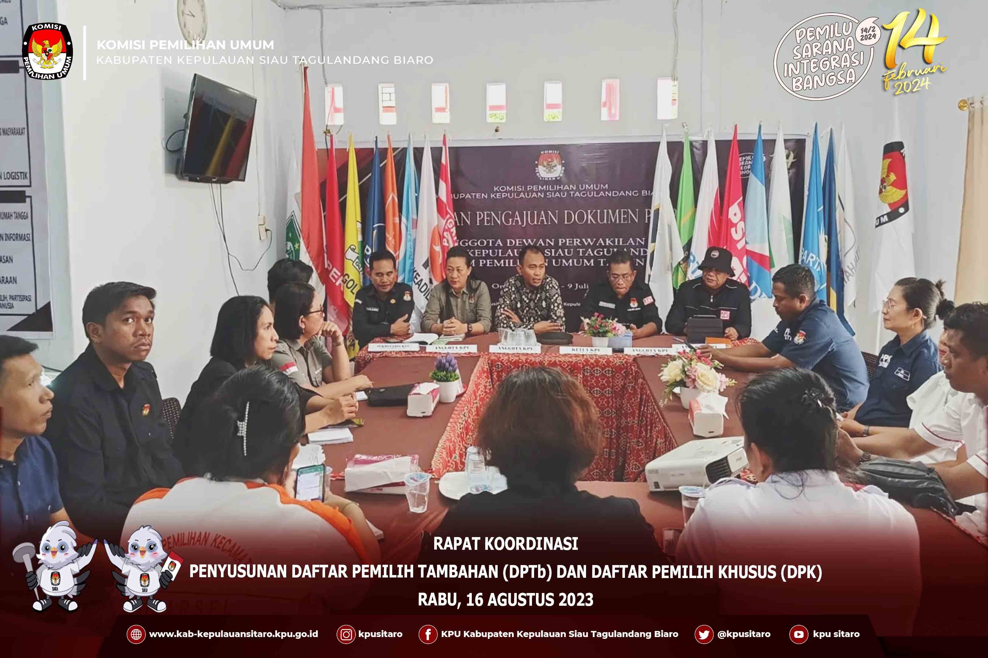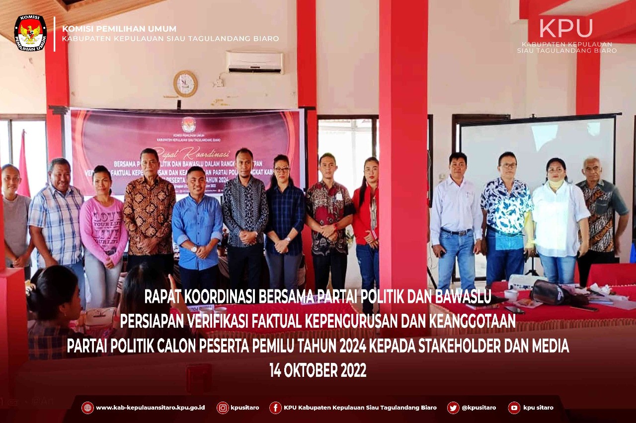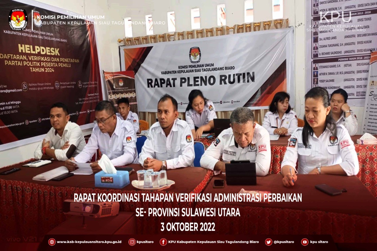 KPU Kabuapaten Kepulauan Siau Tagulandang Biaro Pada Hari Selasa Tanggal 20 Juni 2023 Menetapkan Daftar Pemilih Tetap (DPT) dalam Rapat Pleno Terbuka Rekapitulasi dan Penetapan Daftar Pemilih Tetap (DPT) yang diseleggarakan di Aula Little Mart Lt. II Ulu Siau, dihadiri oleh Jajaran KPU dan Sekretariat, Bawaslu Kabuapten Kepulauan Siau Tagulandang Biaro, Perwakilan Partai Politik, Pihak Pemerintah Daerah yaitu dari Dinas Dukcapil, Dari Kepolisian Resort Siau Tagulandang Biaro dan Dandim 1301 Sangihe yang diwakili oleh Perwira penghubung, Serta Panitia Pemilihan Kecamatan (PPK) Se- Kabuapten Siau Tagulandang Biaro.