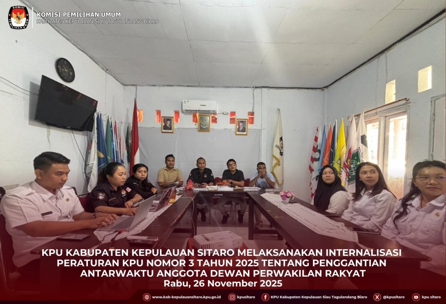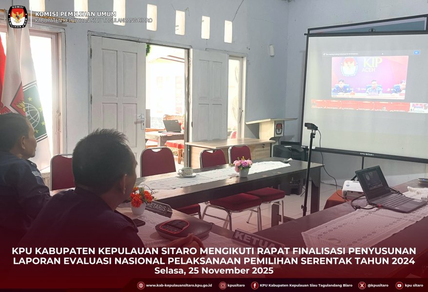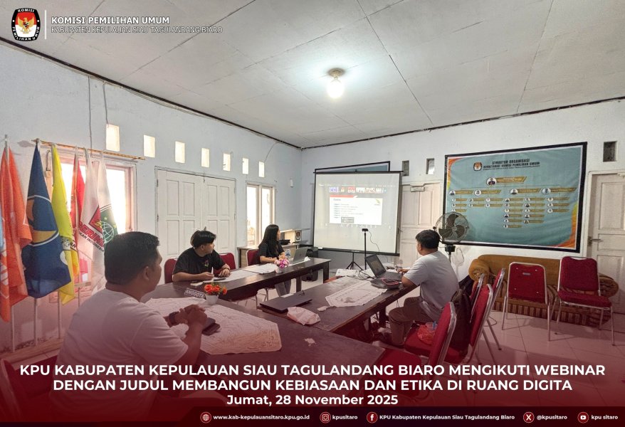 KPU Kabupaten Kepulauan Siau Tagulandang Biaro mengikuti Webinar dengan judul “Membangun Kebiasaan dan Etika di Ruang Digital”. Kegiatan ini dilaksanakan sebagai upaya untuk meningkatkan pemahaman KPU mengenai pentingnya perilaku yang bertanggung jawab, aman, dan beretika saat beraktivitas di dunia maya. Acara ini diikuti oleh seluruh KPU Provinsi, KPU Kab/Kota yang ada di Indonesia.