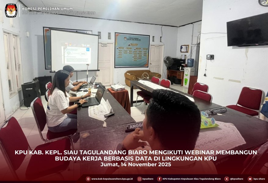 KPU Kab. Kepl. Siau Taguladang Biaro mengikuti webinar “Membangun Budaya Kerja Berbasis Data di Lingkungan KPU” pada Jumat (14/11/2025).