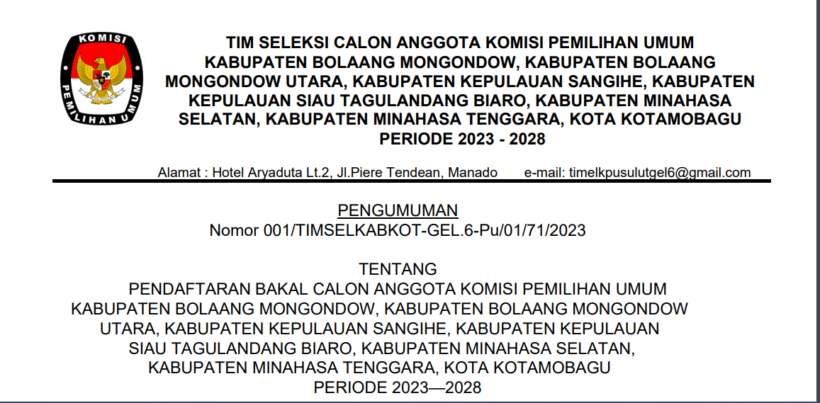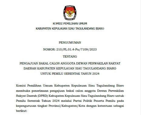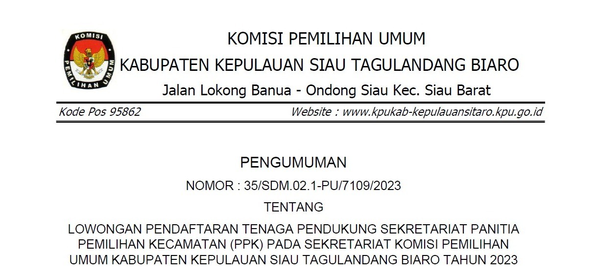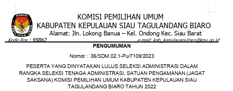 Tempat : Kantor KPU Kab. Kepl. Siau Tagulandang Biaro, Jl. Lokongbanua, Kel. Ondong, Kec. Siau Barat
